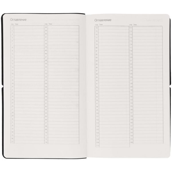 Внутри вы найдете пронумерованные страницы для записей, а также несколько специальных страниц: