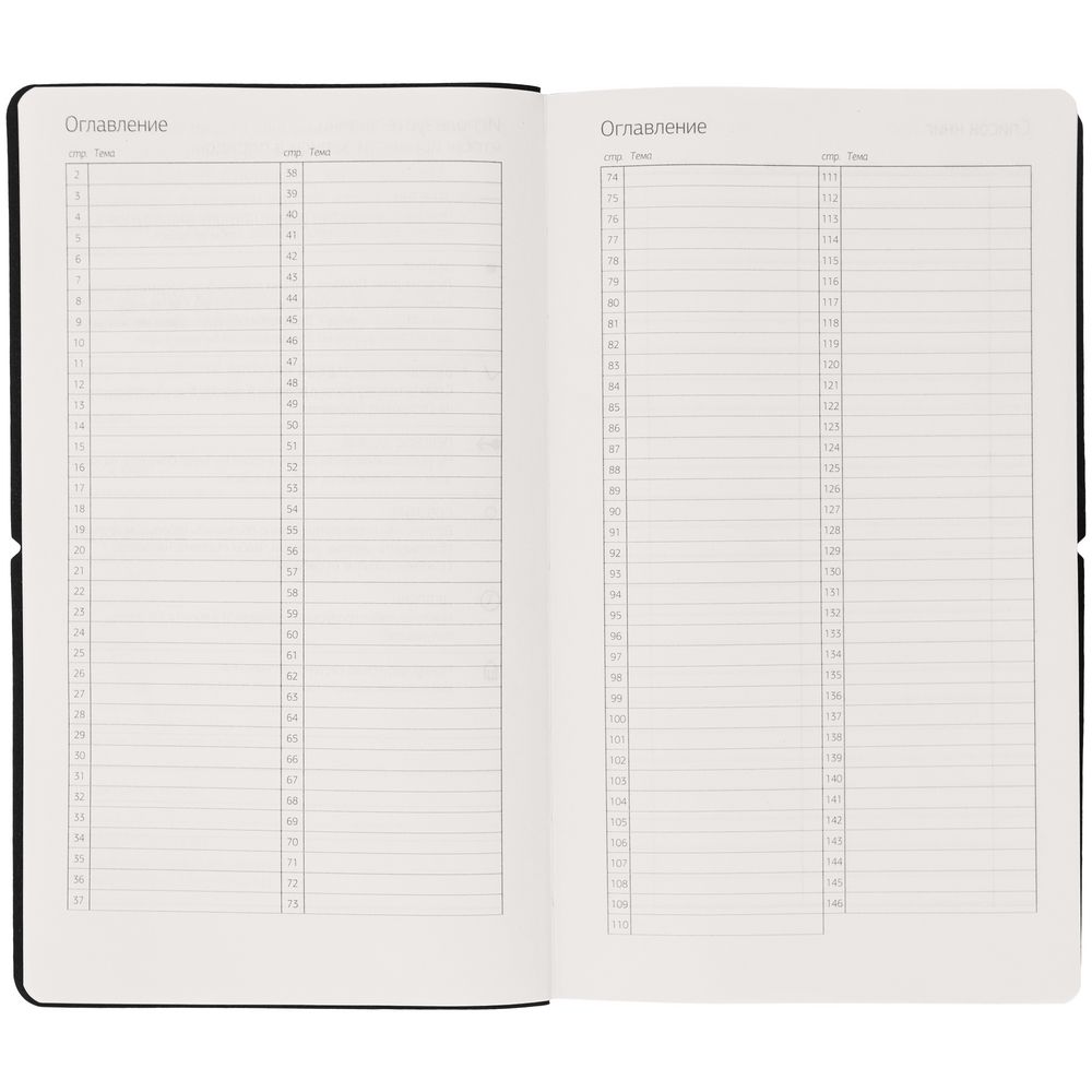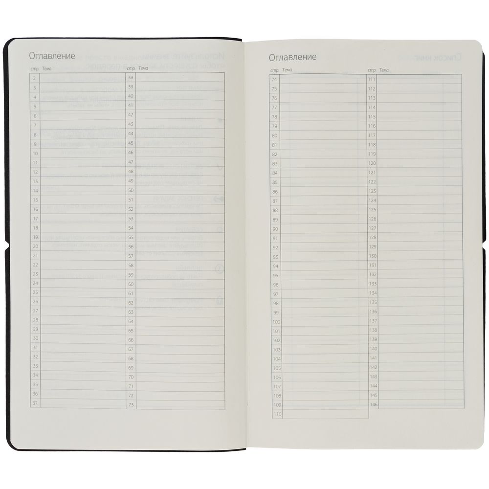 Внутри вы найдете пронумерованные страницы для записей, а также несколько специальных страниц: