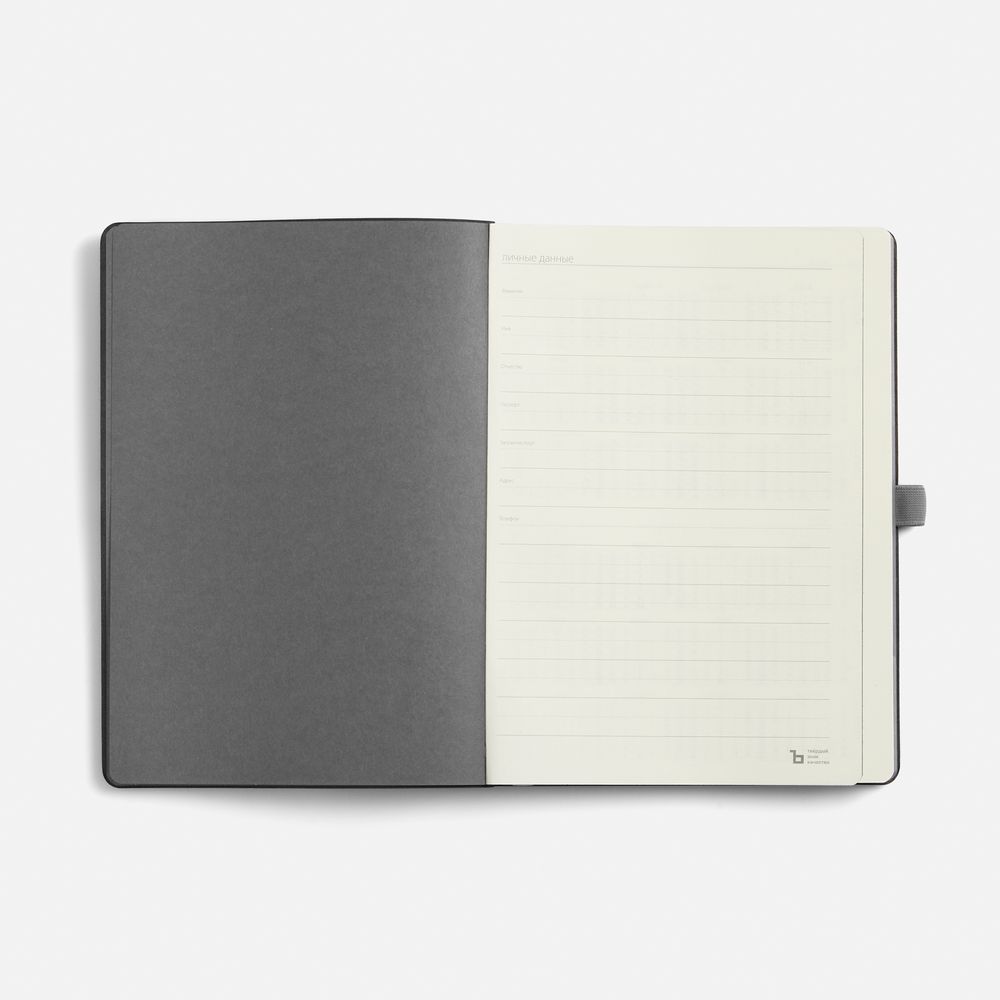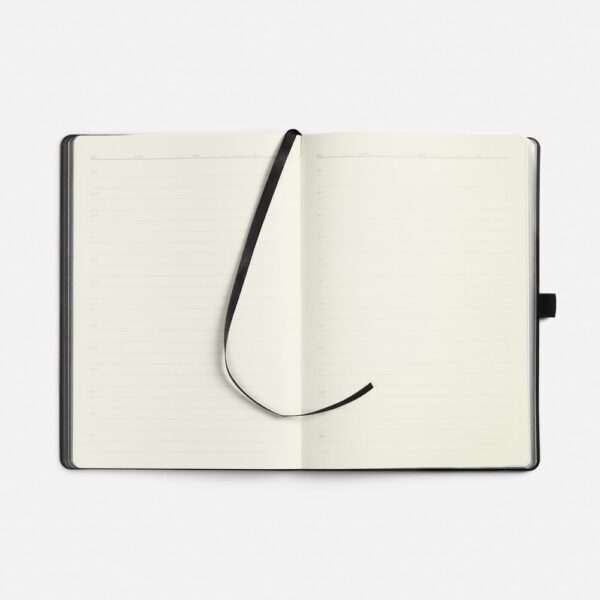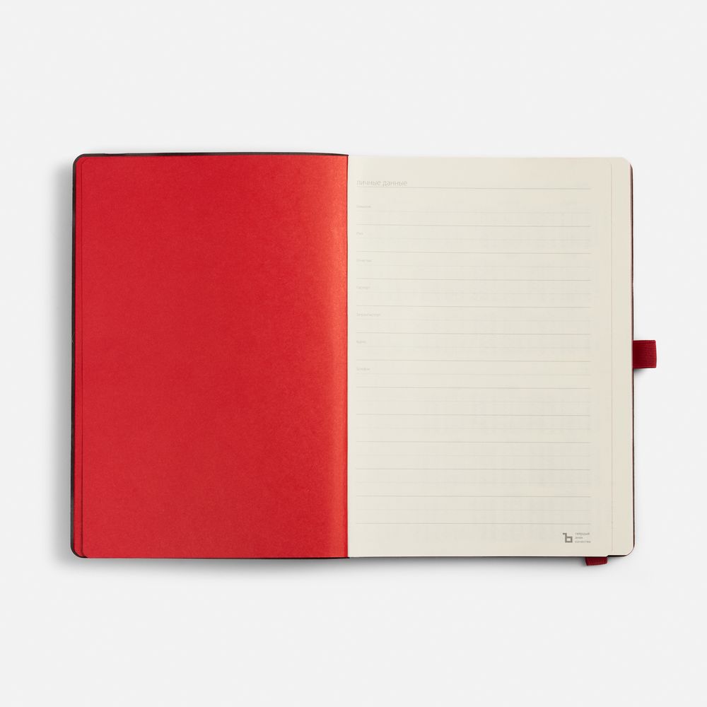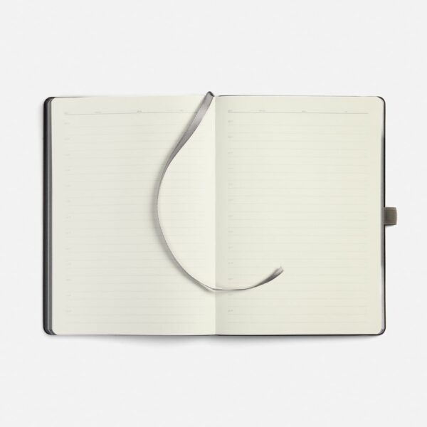 Ежедневник с гибкой обложкой, выполнен из материала Nice Touch, черный АА, дополнен цветными ляссе и петлей-резинкой для ручки.