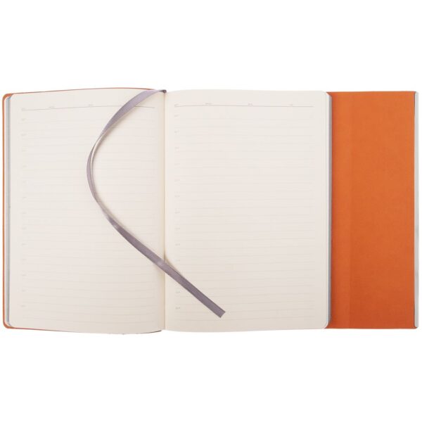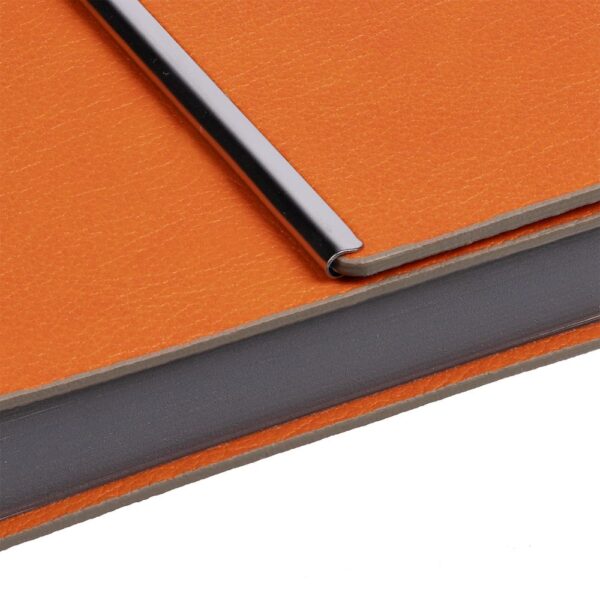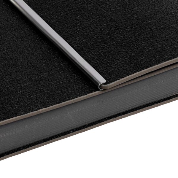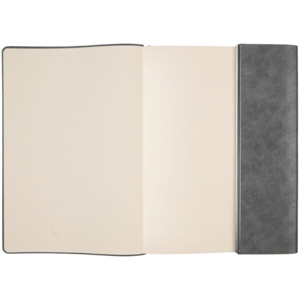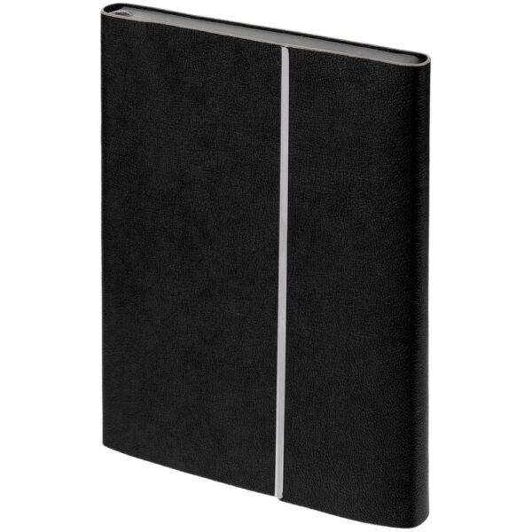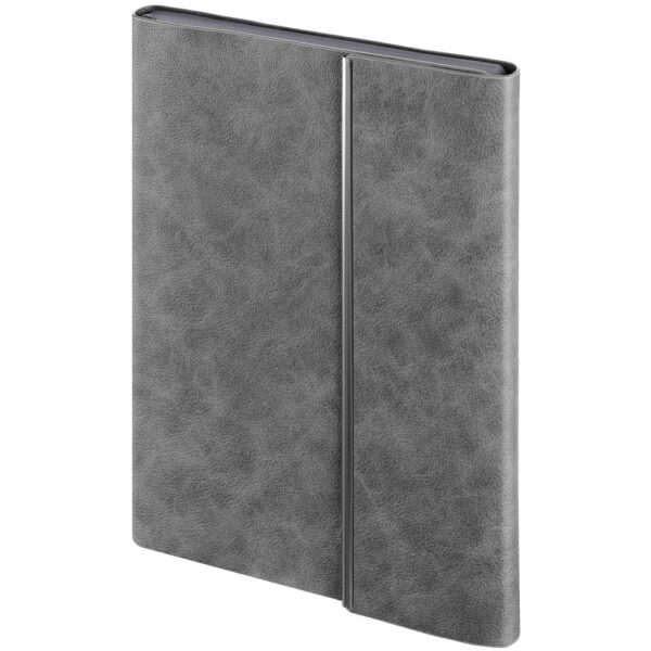 Ежедневник с гибкой обложкой, клапаном на магните и металлической отделкой клапана. Выполнен из материала Petrus, серый СС, дополнен серым ляссе.