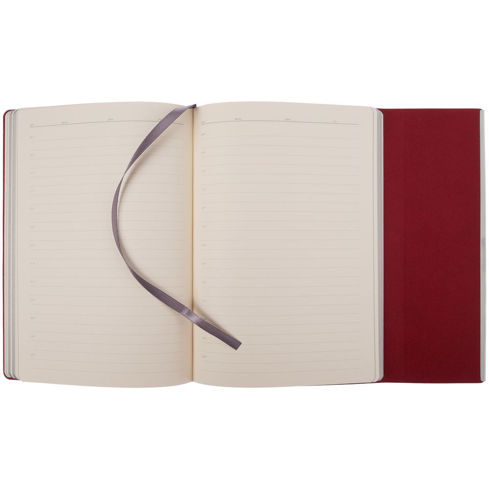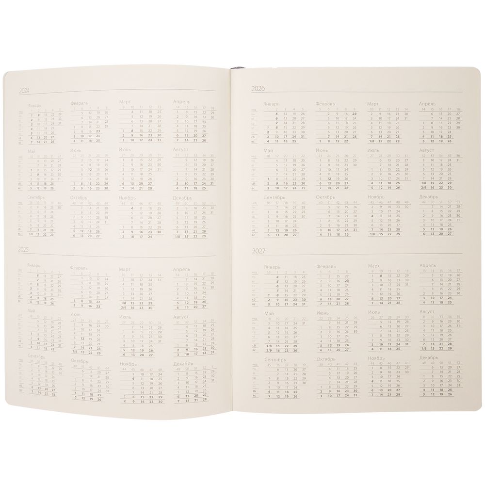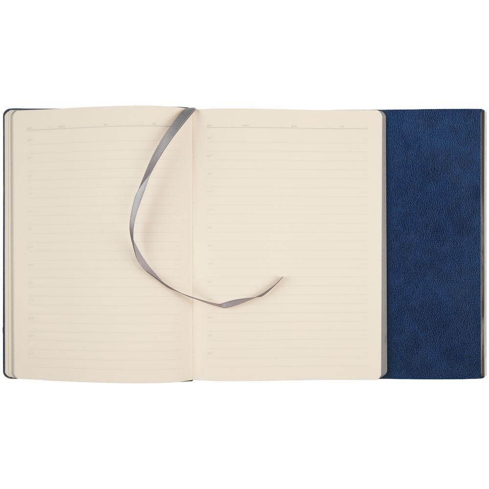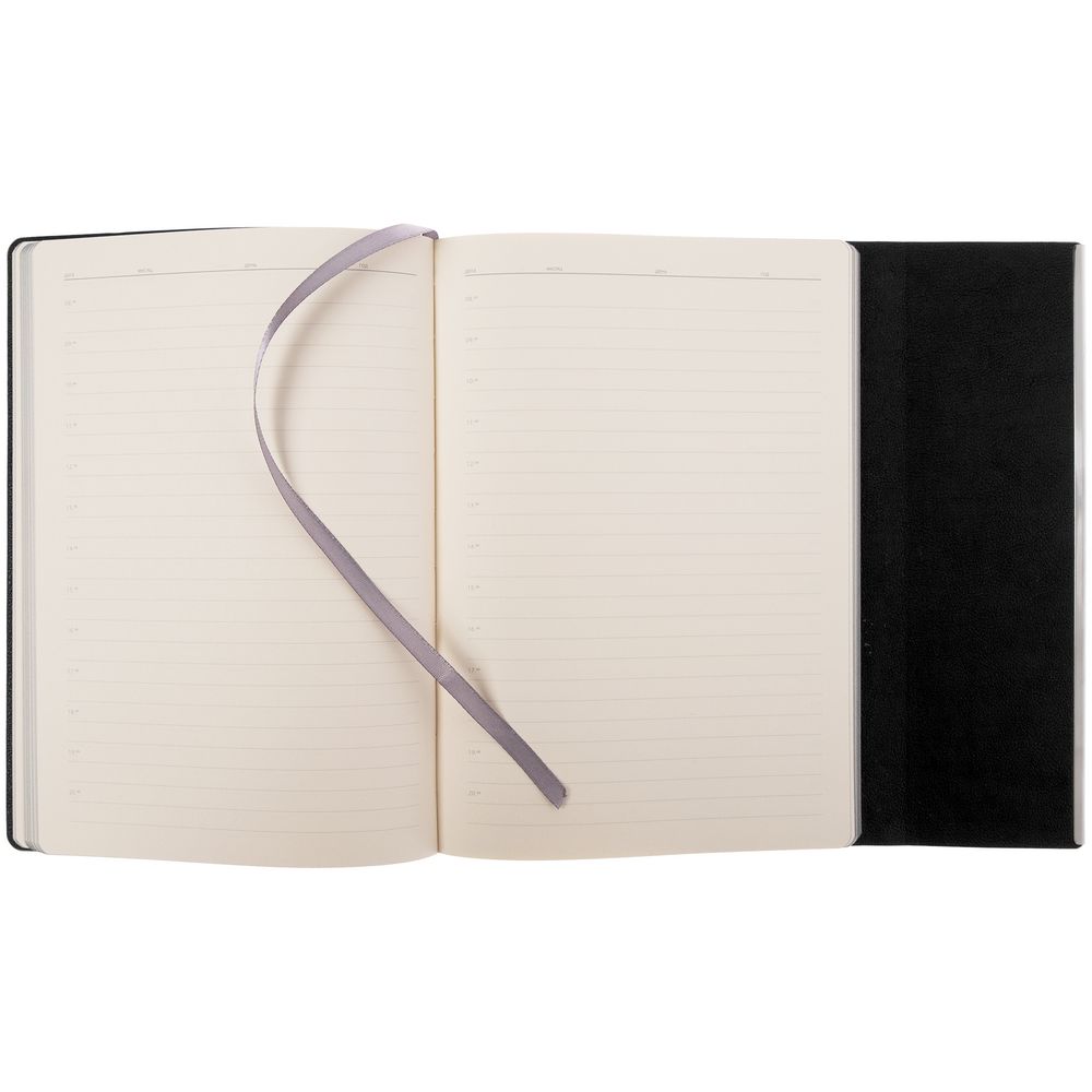 Ежедневник с гибкой обложкой, клапаном на магните и металлической отделкой клапана. Выполнен из материала Petrus, серый СС, дополнен серым ляссе.