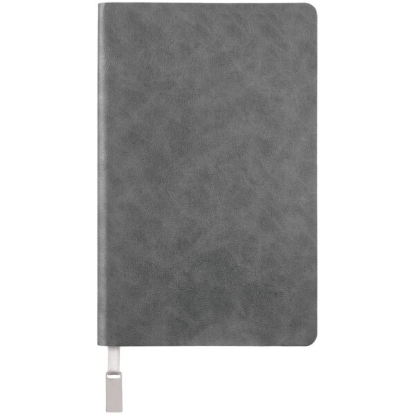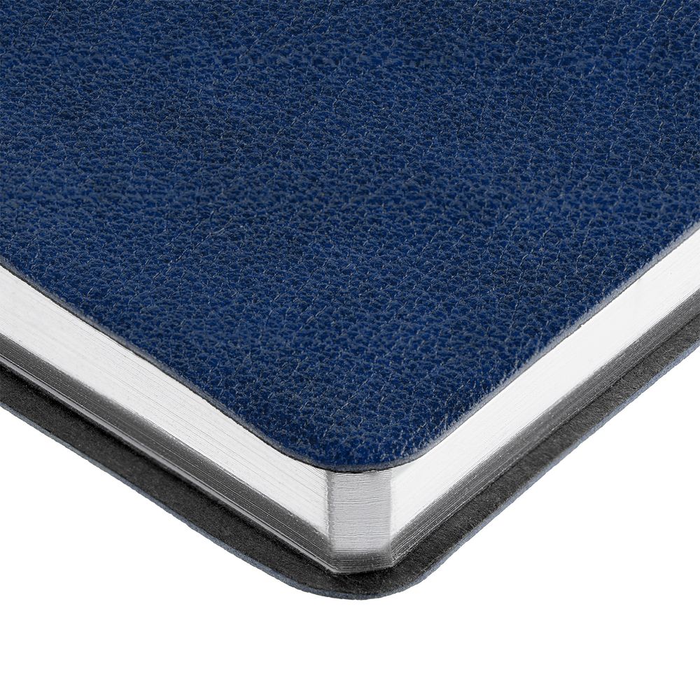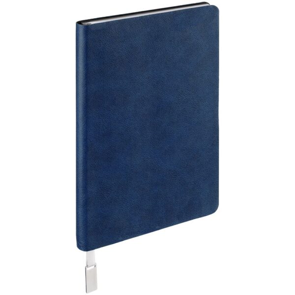 Ежедневник с гибкой обложкой, выполнен из материала Petrus, синий НН, дополнен серым ляссе с металлическим шильдиком.