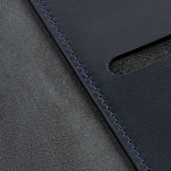 Ежедневник со съемной обложкой-портфолио из натуральной кожи, с капталом, репсовым ляссе и окрашенным срезом обложки в цвет материала.