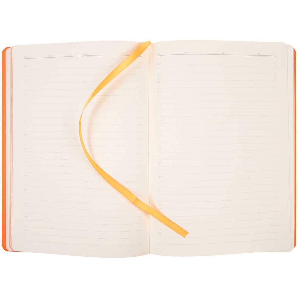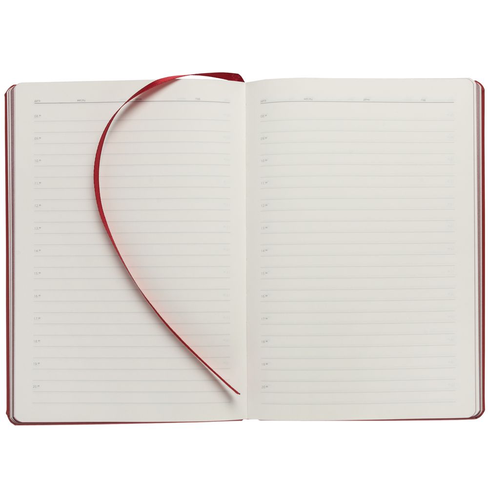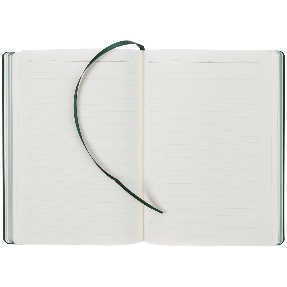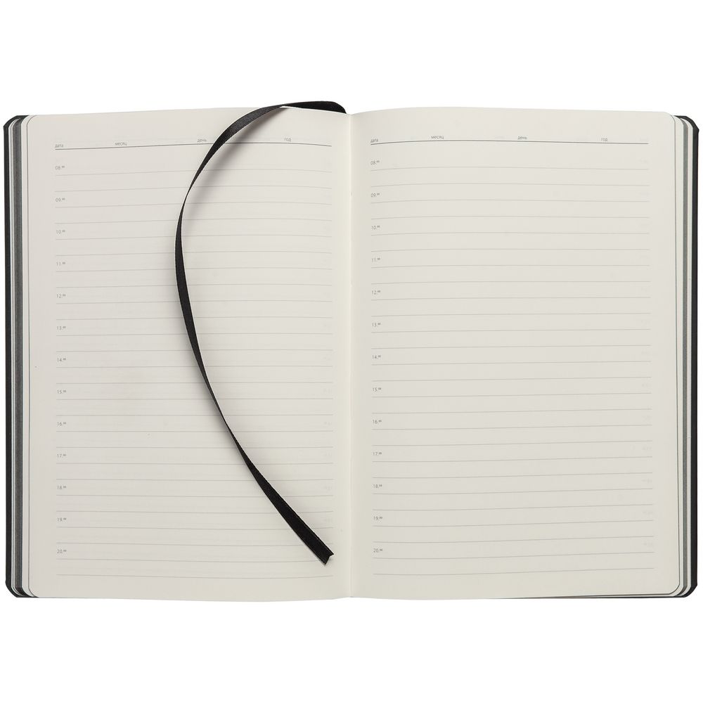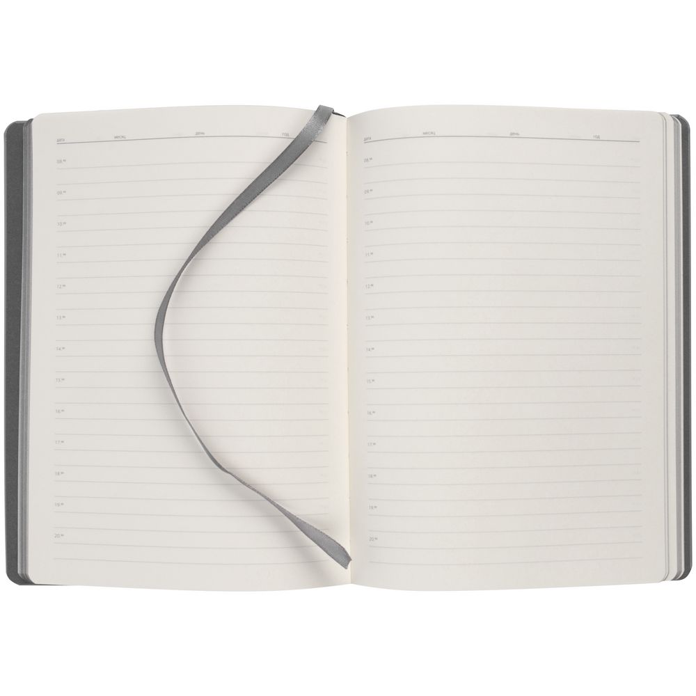 Ежедневник с твердой обложкой и тонированным обрезом, выполнен из материала Soft Touch, синий НН, дополнен ляссе в цвет обложки.