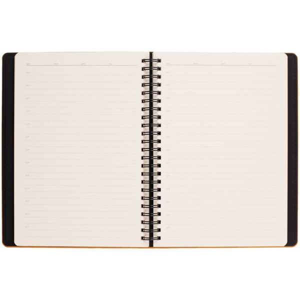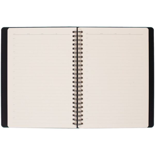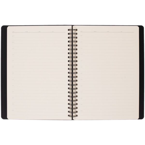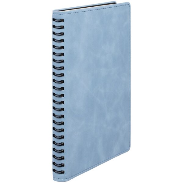 Ежедневник с блоком на пружине в твердой обложке, выполнен из материалов Nubuk Touch, серый СС и Soft Touch, черный AA.