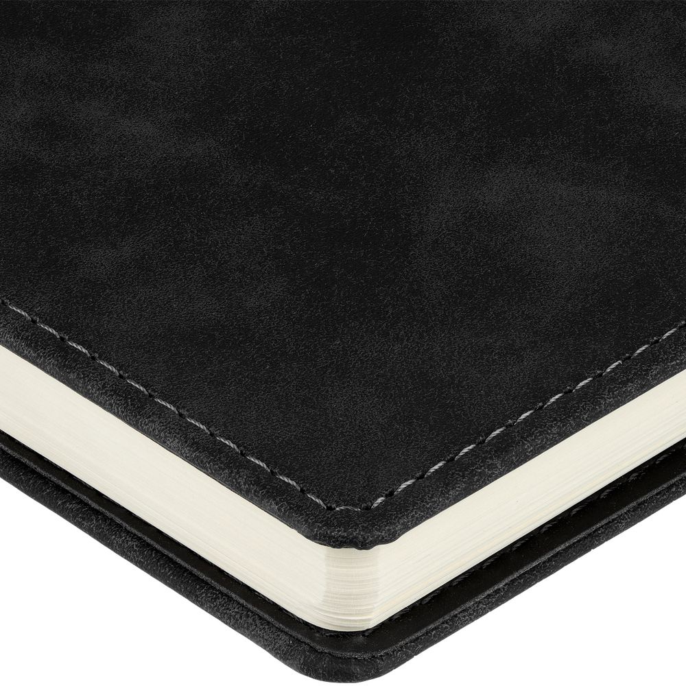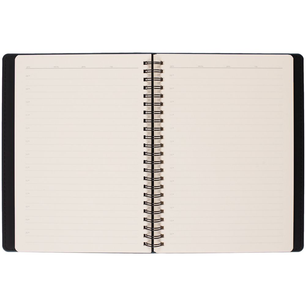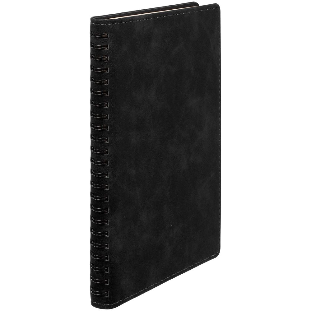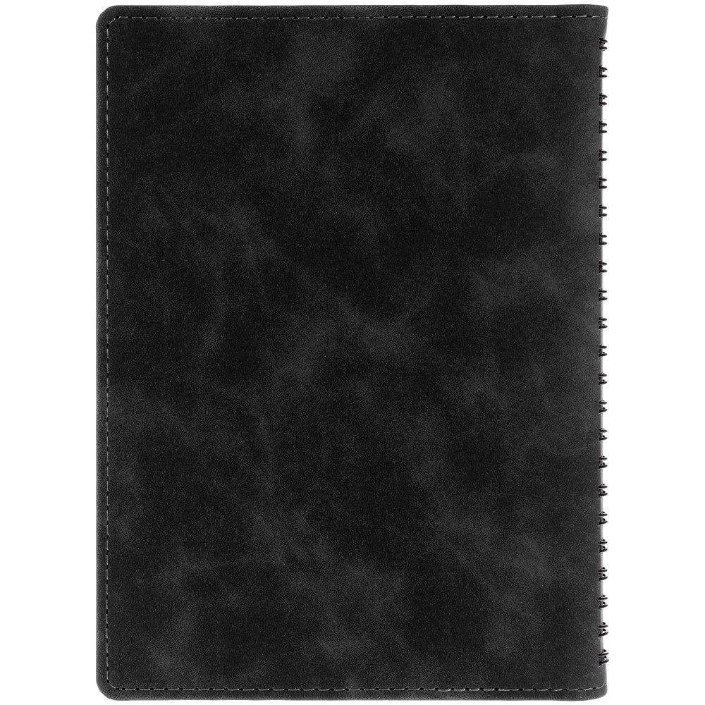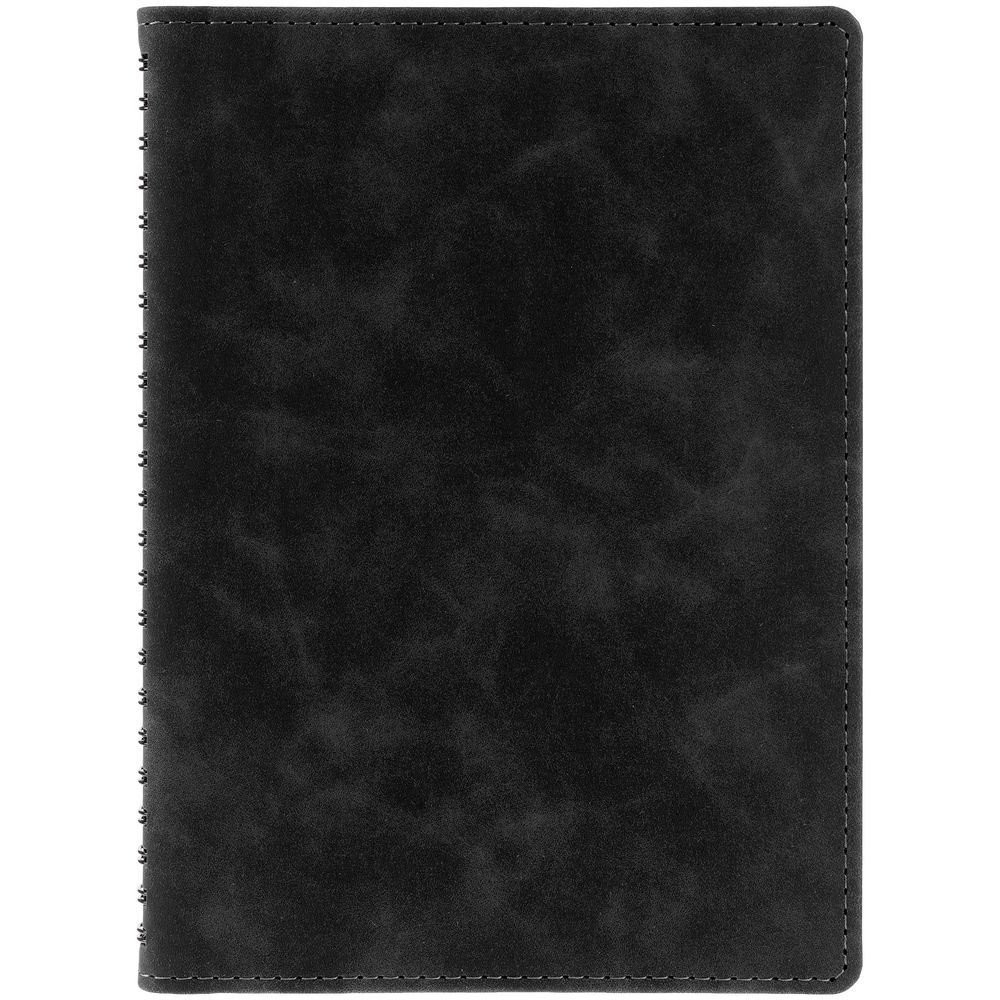 Ежедневник с блоком на пружине в твердой обложке, выполнен из материалов Nubuk Touch, серый СС и Soft Touch, черный AA.