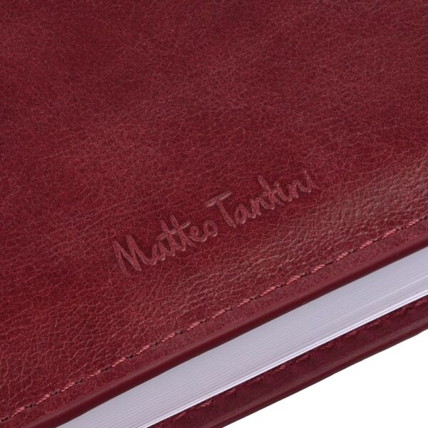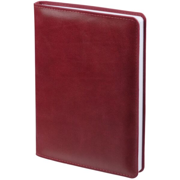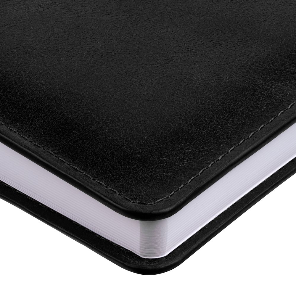 Ежедневник с полутвердой обложкой из натуральной кожи с поролоном. Каптал, репсовое ляссе и окрашенный срез обложки в цвет материала.