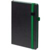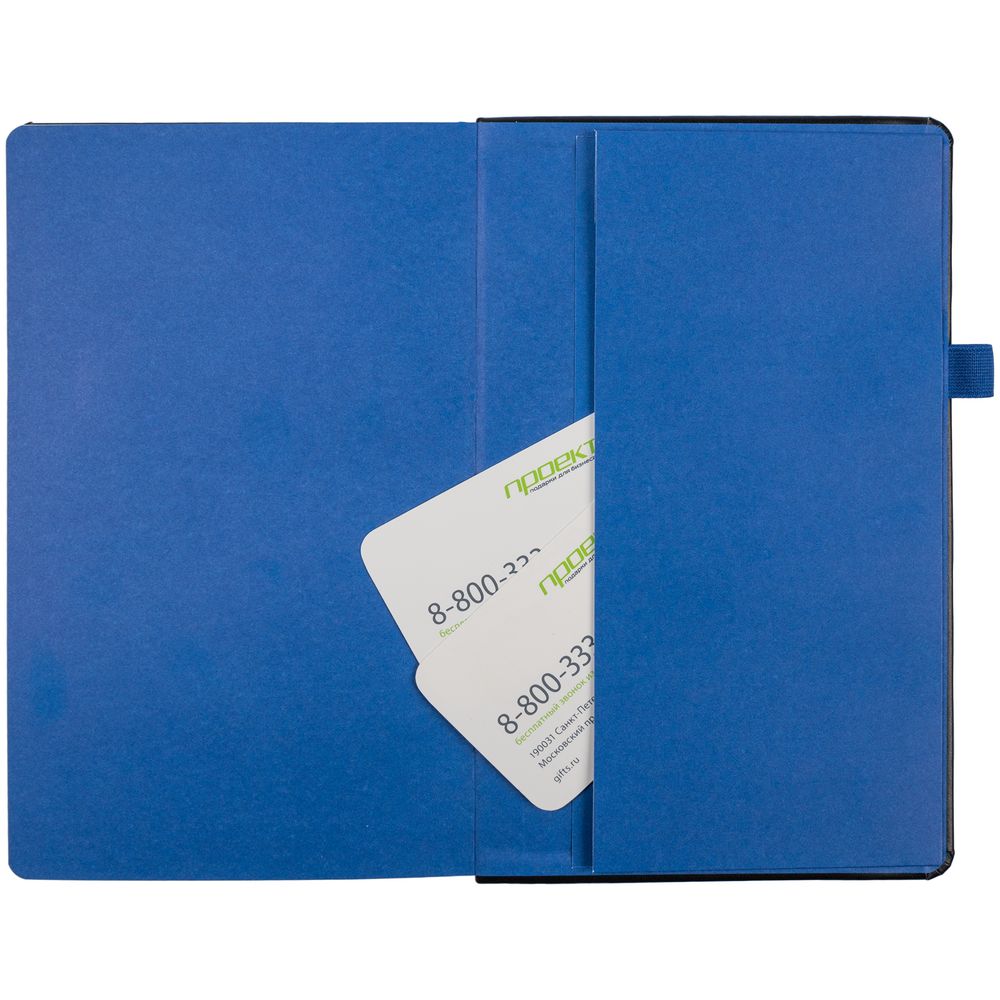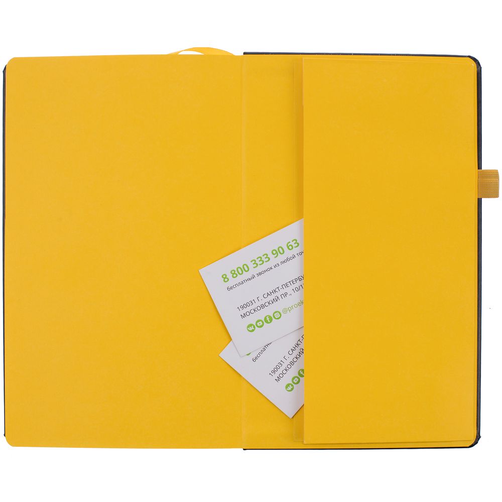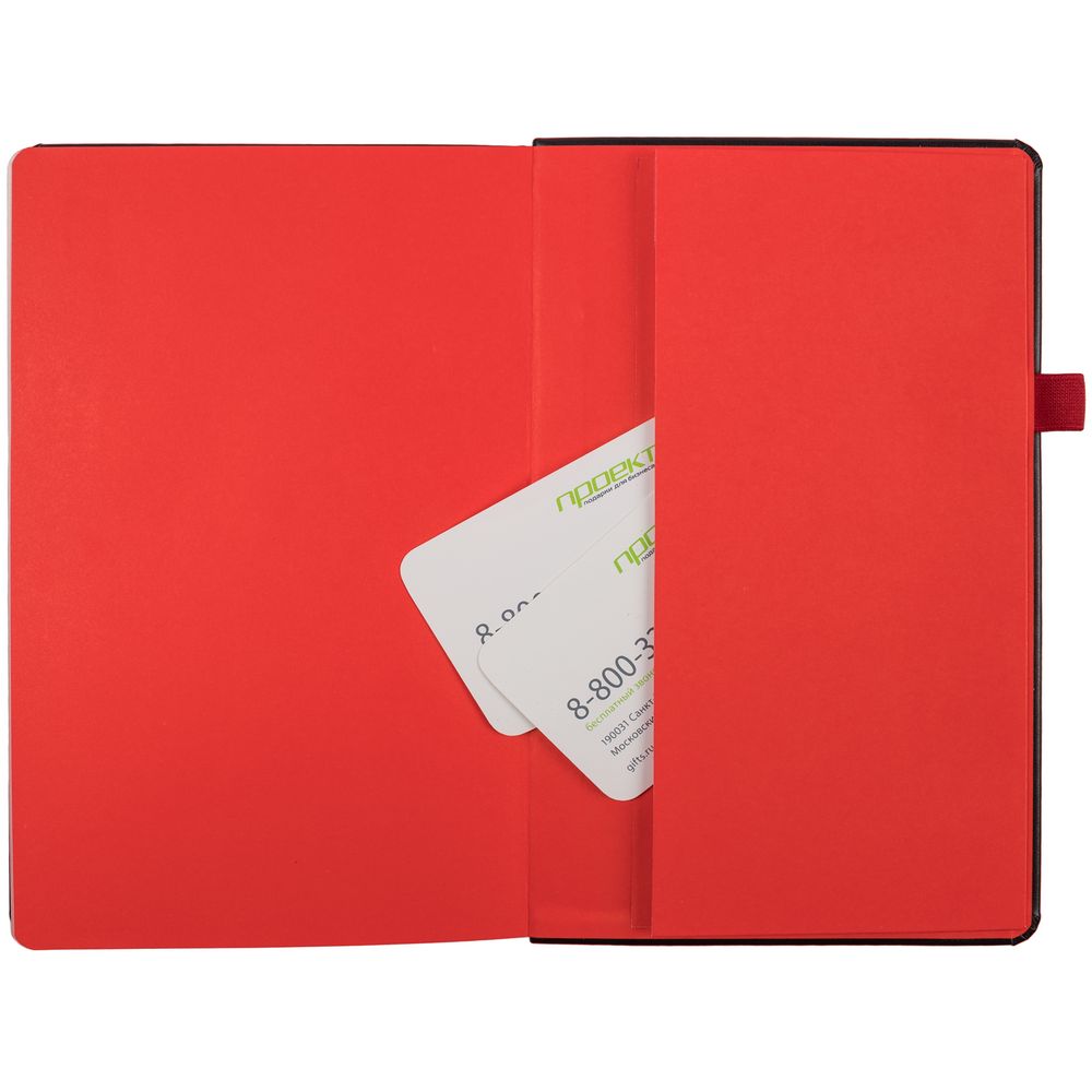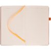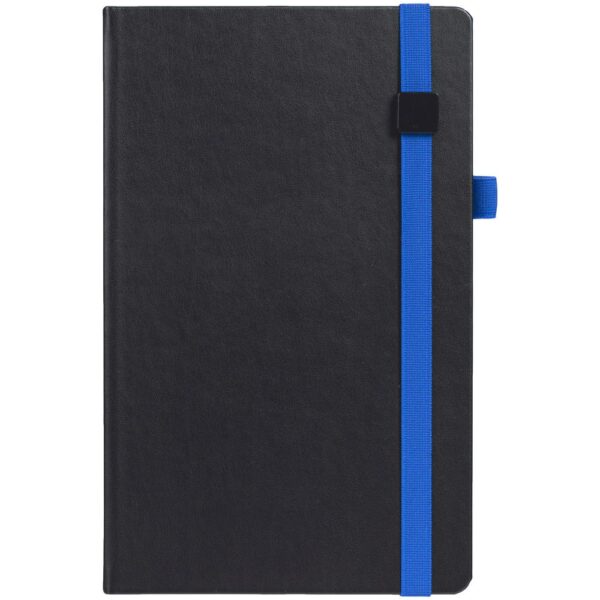 Ежедневник с полутвердой обложкой, выполнен из материала Waltz, черный АА, дополнен оранжевой резинкой с металлическим шильдом и ляссе.