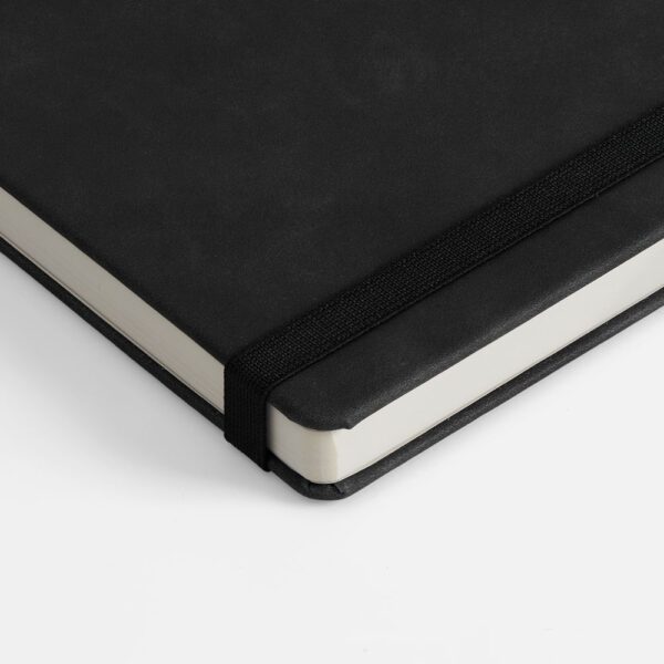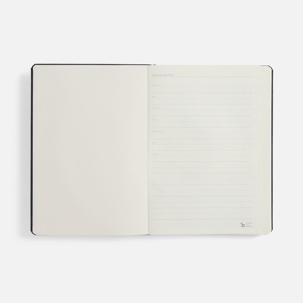 Ежедневник с твердой обложкой, выполнен из материала Nubuck Touch, серый СС, дополнен ляссе темно-серого цвета.