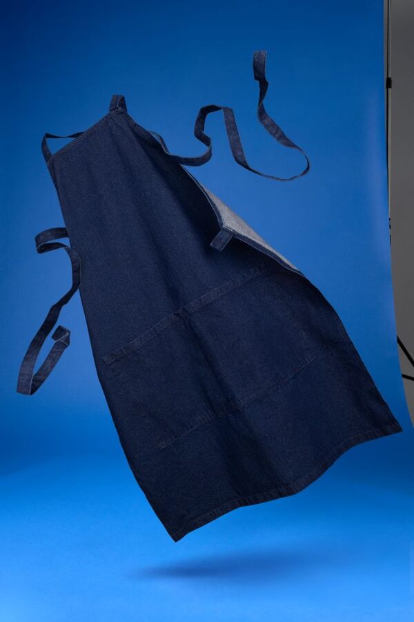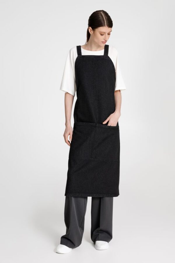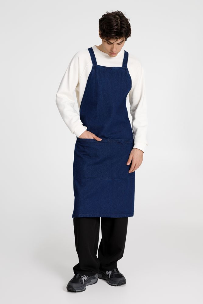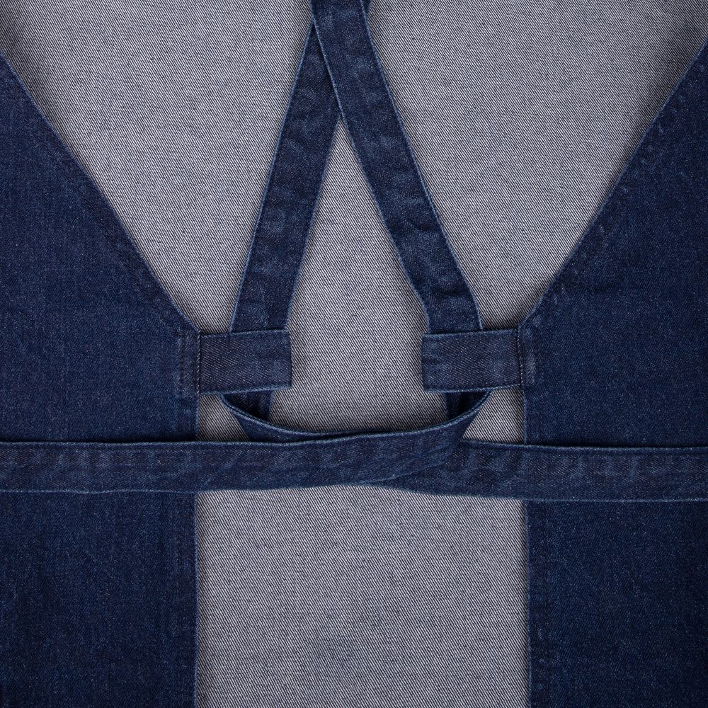 Стильный фартук из денима разработан в рамках единой коллекции одежды и аксессуаров и легко комбинируется с ее элементами. Специально спроектированные лекала и технологии пошива открывают простор для любых вариантов кастомизации и нанесения изображений. На видимой части изделий нет лейблов с айдентикой бренда, а название бренда с уходника легко удалить.