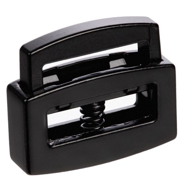Для установки необходимо нажать на кнопку фиксатора и пропустить шнур через отверстие. Подходит для лент шириной до 1 см или для круглых шнуров и резинок диаметром до 0,5 см.