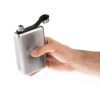 Завинчивающаяся крышка надежно крепится к горлышку ремешком, за который также удобно подвешивать и саму фляжку, например, на рюкзак.