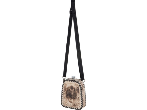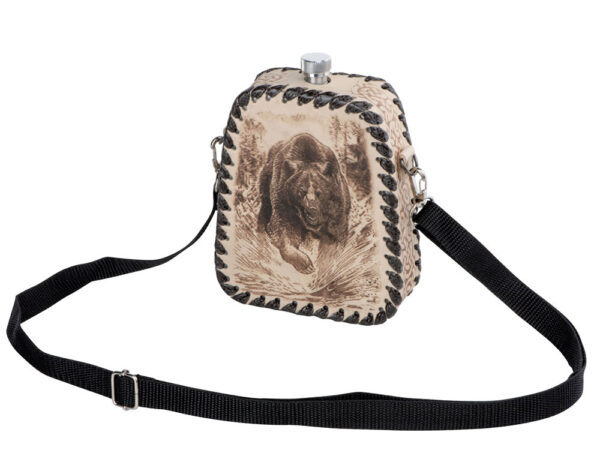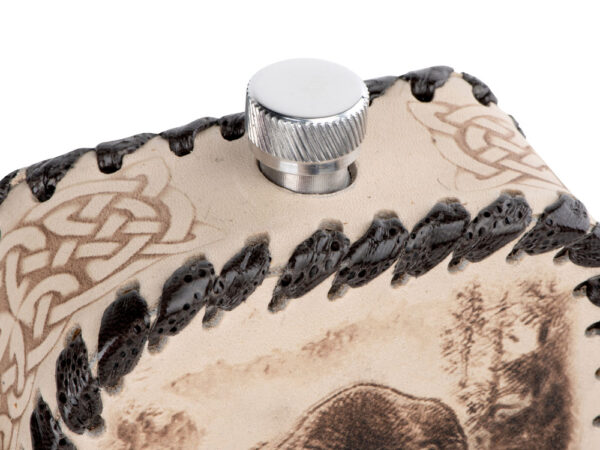 Фляга 0,7л в оплетке из натуральной кожи с нанесением рисунка методом художественного выжигания.