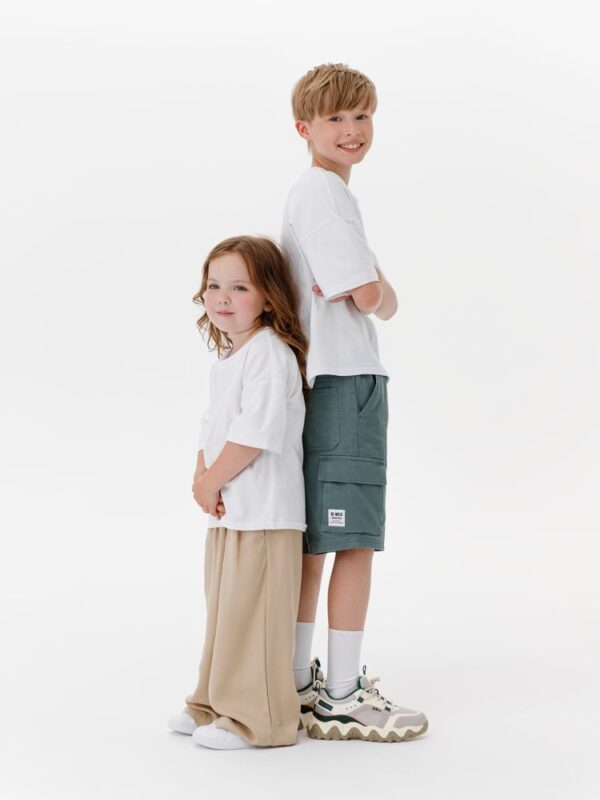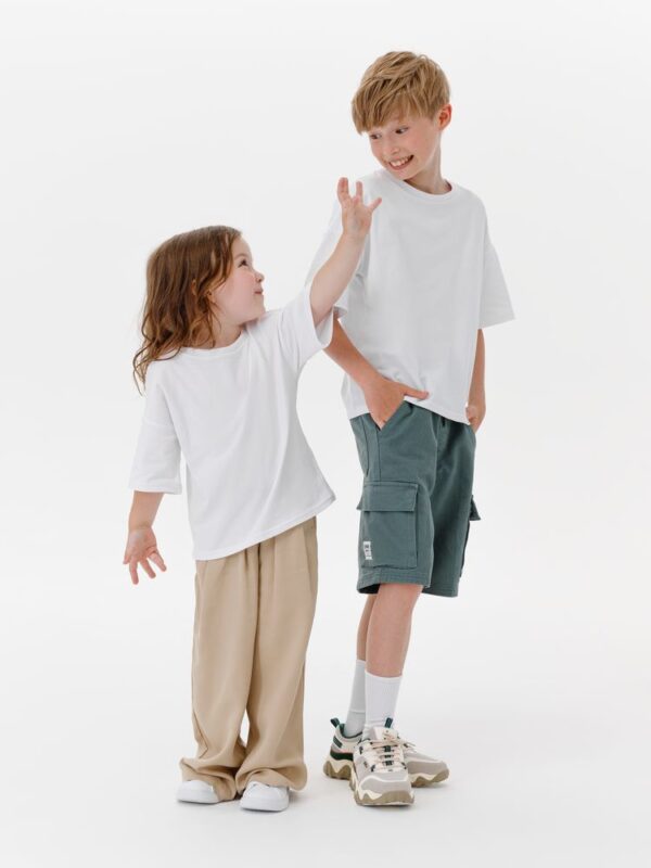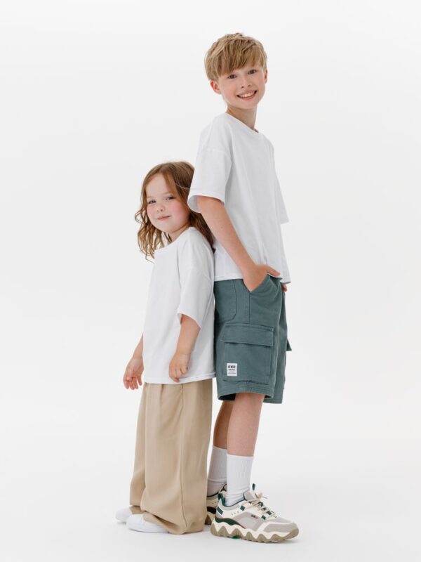 Детская футболка оверсайз из гребенного хлопка с эластаном не стесняет движений и создает модный силуэт.