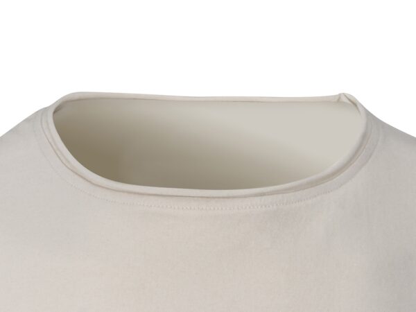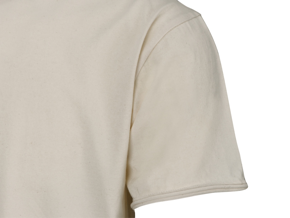 Современная футболка из натурального, неотбеленного хлопка. Без боковых швов — отлично подходит для нанесения. Горловина, рукава и низ выполнены с декоративной отделкой.