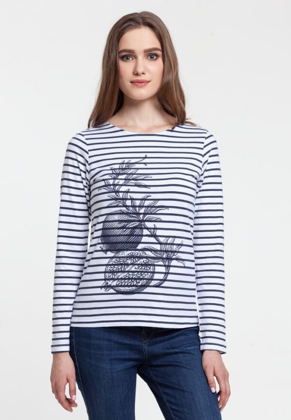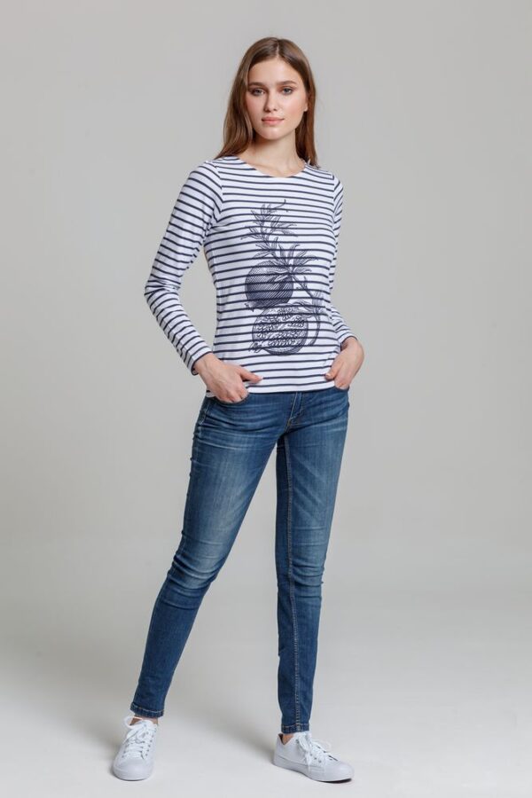 Кроеная футболка с длинными рукавами и круглым воротом из 100% гребенного хлопка.