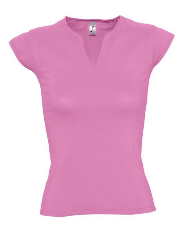 Женская кроенная футболка с оригинальным V-образным вырезом.