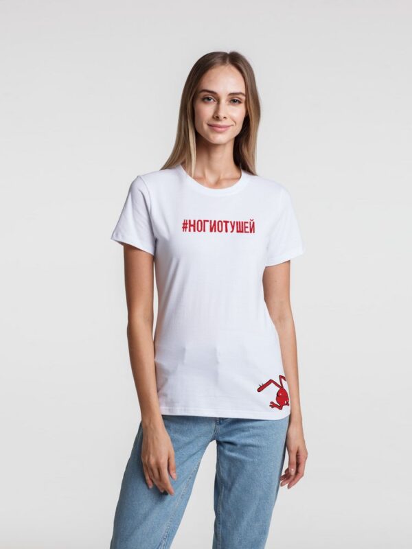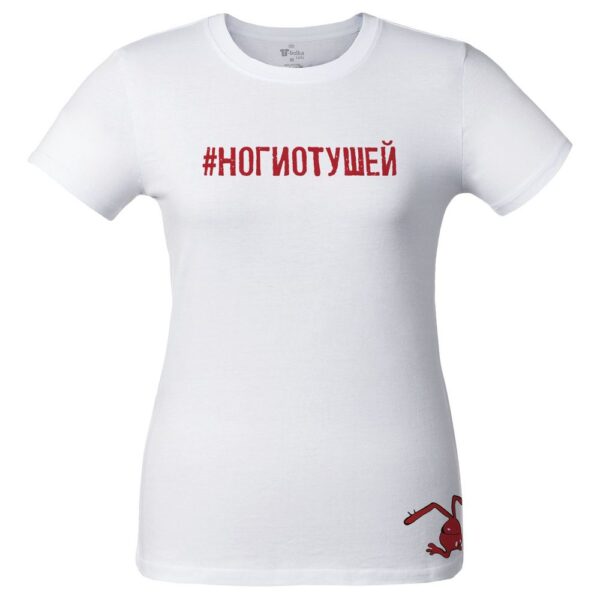 Перед вами поучительная история персонажа, который был несколько недальновиден и теперь у него буквально ноги от ушей! Эта приятно прилегающая к телу футболка предупреждает: в любой непонятной ситуации… всегда старайтесь разобраться в ситуации!Кроеная женская футболка с круглым воротом-резинкой 1×1.