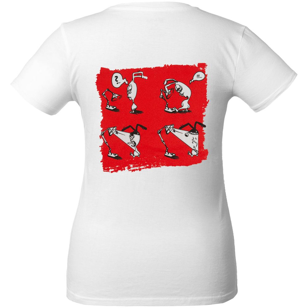 Перед вами поучительная история персонажа, который был несколько недальновиден и теперь у него буквально ноги от ушей! Эта приятно прилегающая к телу футболка предупреждает: в любой непонятной ситуации… всегда старайтесь разобраться в ситуации!Кроеная женская футболка с круглым воротом-резинкой 1×1.
