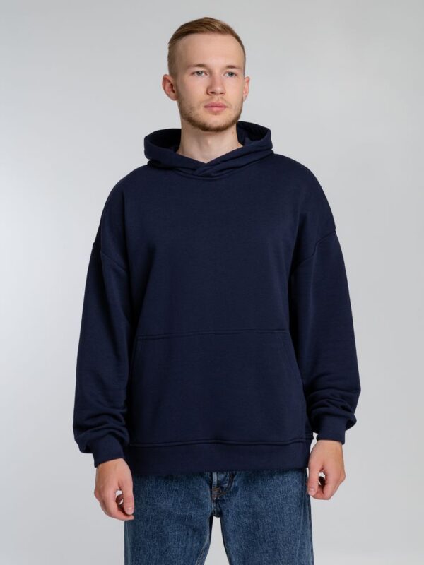 Худи оверсайз унисекс со спущенным плечом и карманом-кенгуру.