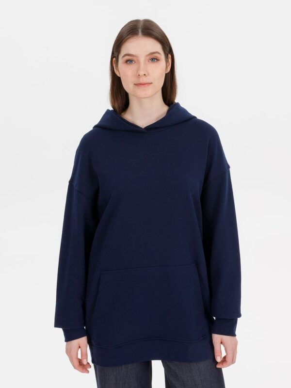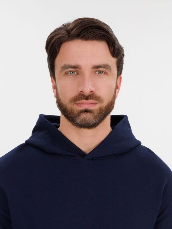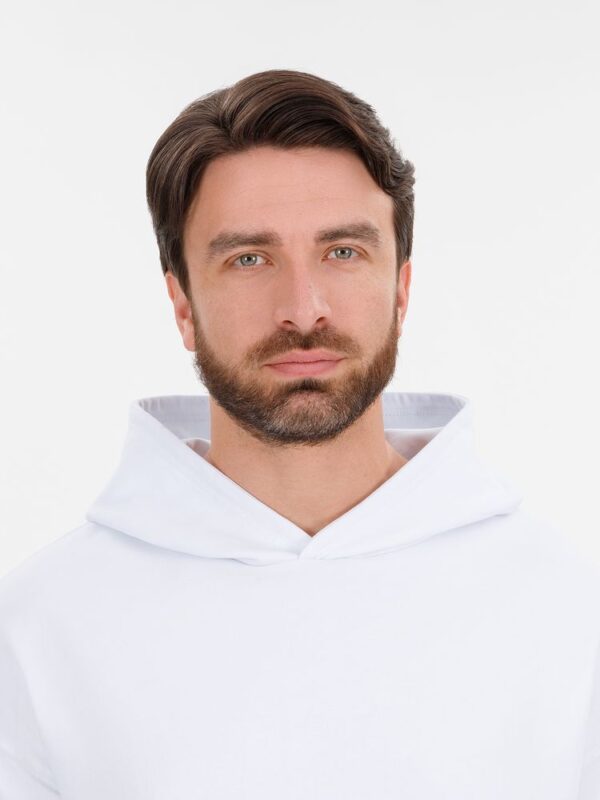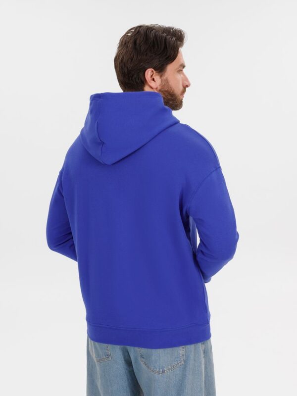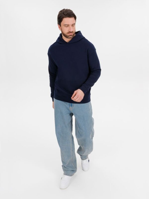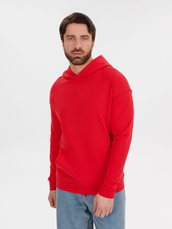 Худи унисекс со спущенным плечом и карманом-кенгуру расслабленного силуэта.