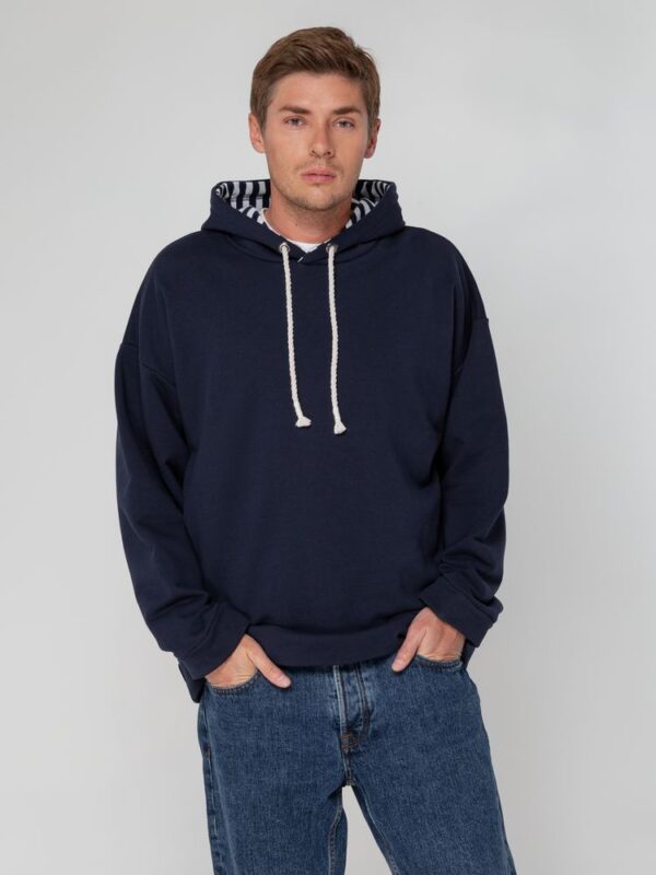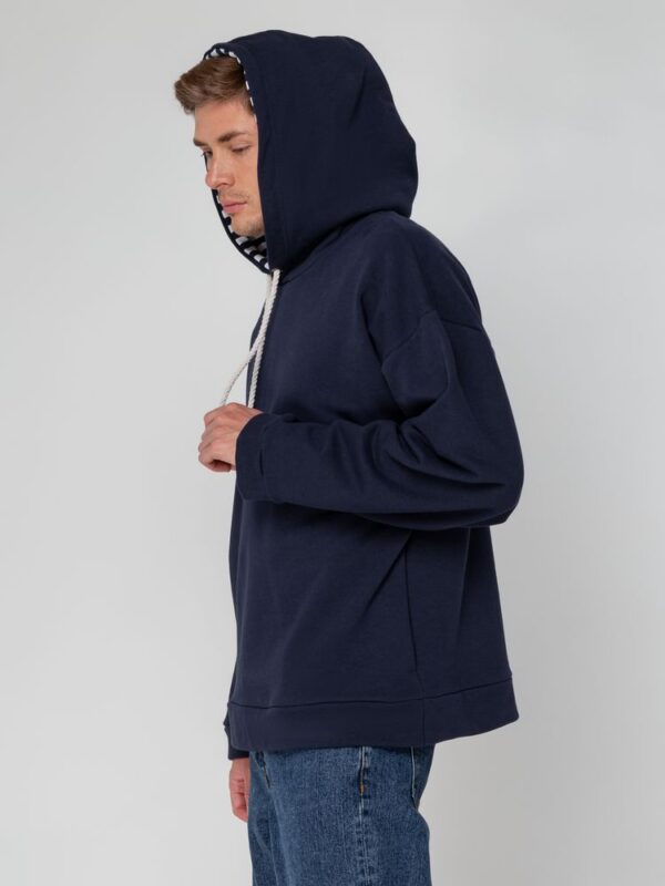 Худи унисекс в морском стиле со спущенным плечом и карманами в боковых швах.