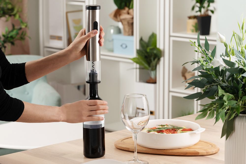 Электрический штопор — незаменимый помощник для ценителей вина. Позволяет легко и быстро справиться с пробкой любой прочности и открыть бутылку.