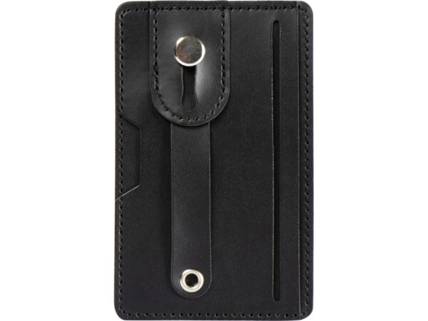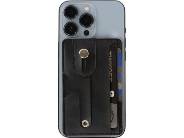 Удобный бумажник для телефона с защитой RFID с ремешком. Этот бумажник с защитой от сканирования RFID вмещает 2 банковские карты или удостоверения личности и защищает их от несанкционированного сканирования и мошенничества. Клейкая лента на обратной стороне бумажника позволяет крепить его к смартфону с плоской задней поверхностью. К бумажнику прикреплен ремешок, позволяющий удобно держать телефон в руке. Кожа ПУ.