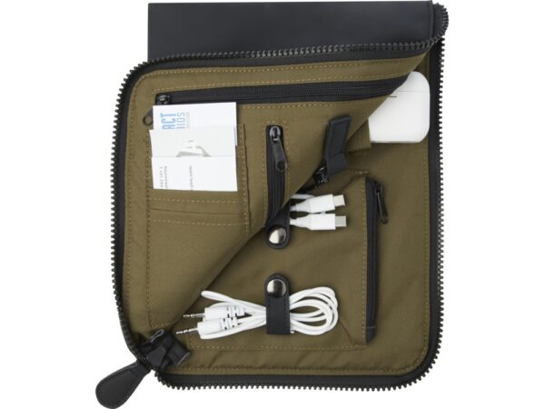Клатч-органайзер Turner изготовлен из очень прочных и экологически чистых материалов. Внешняя часть изготовлена из 51% переработанного полимерного пластика, сертифицированного по стандарту GRS, а подкладка — из 100% переработанного PET-пластика, сертифицированного по стандарту GRS. Данный органайзер делает именно то, что обещает его название: для любых нужд предусмотрено специальное отделение. Будь то кабели, наушники airpods, карты, ключи — для всего, что угодно, можно найти свое место! Благодаря застежкам-молниям с обеих сторон клатча можно легко добраться до каждой вещи, хранящейся внутри. Данный клатч-органайзер рассчитан на долгий срок службы, а благодаря классическому дизайну и прочным материалам он станет вашим любимым.