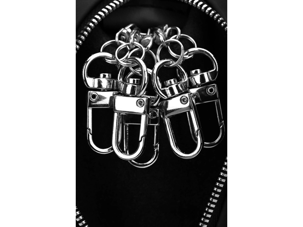 Простая, но в тоже время стильная ключница. Небольшие кольца для ключей, делают эту ключницу максимально легкой. 5 колец для ключей. Металлическая молния придает строгости внешнему виду!