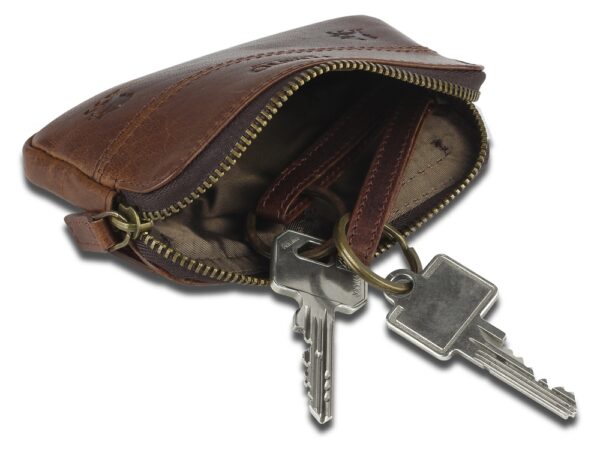 Ключница изготовлена вручную из натуральной кожи буйвола, обеспечивает безопасное хранение и переноску ключей.