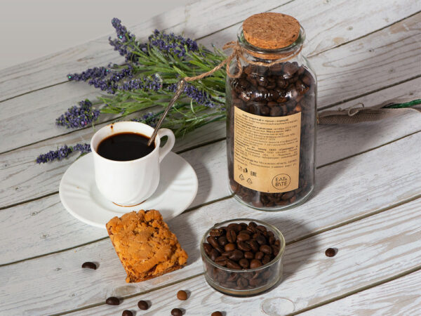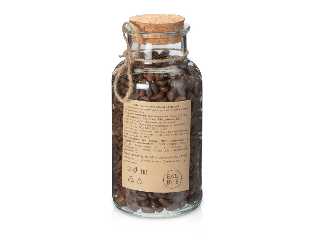 Состав: кофе натуральный жареный в зернах, палочки корицы.
