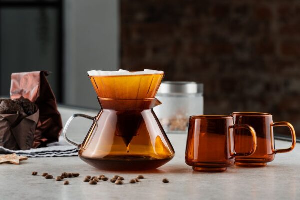 Элегантный кофейный набор Force Nexus добавит эстетики кофе-брейку и порадует ценителей своим изысканным современным исполнением. Благодаря тонкому боросиликатному стеклу кружки, воронка и кофейник Force Nexus очень легкие, а янтарный цвет привлекает внимание и добавляет теплоты.