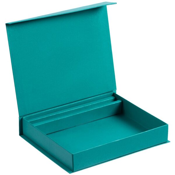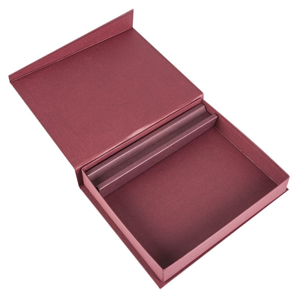 Коробка с клапаном на магните, выполнена из переплетного картона, кашированного бумагой Malmero.