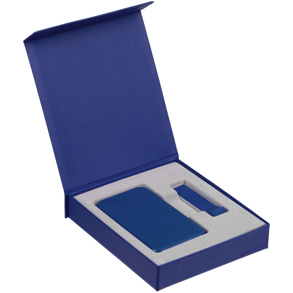 Подарочная коробка для аккумулятора 12,3х7,1х1 см и флешки 8,2х2,2х1,2 см с крышкой на магните и флокированным ложементом.