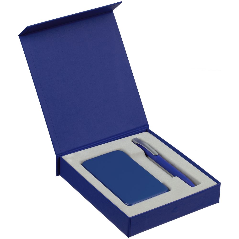 Подарочная коробка для аккумулятора 12,3х7,1х1 см и ручки 14,5х1,5х0,8 см с крышкой на магните и флокированным ложементом.