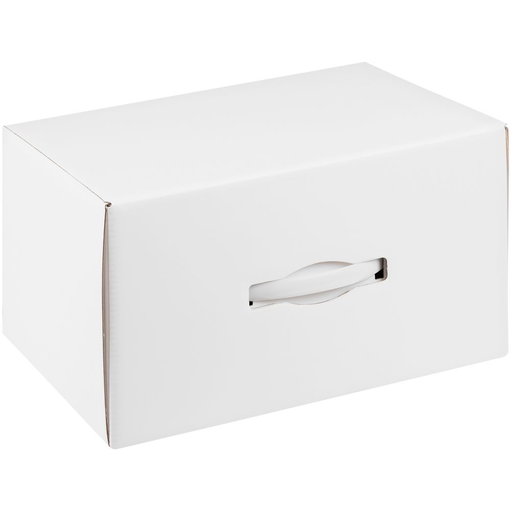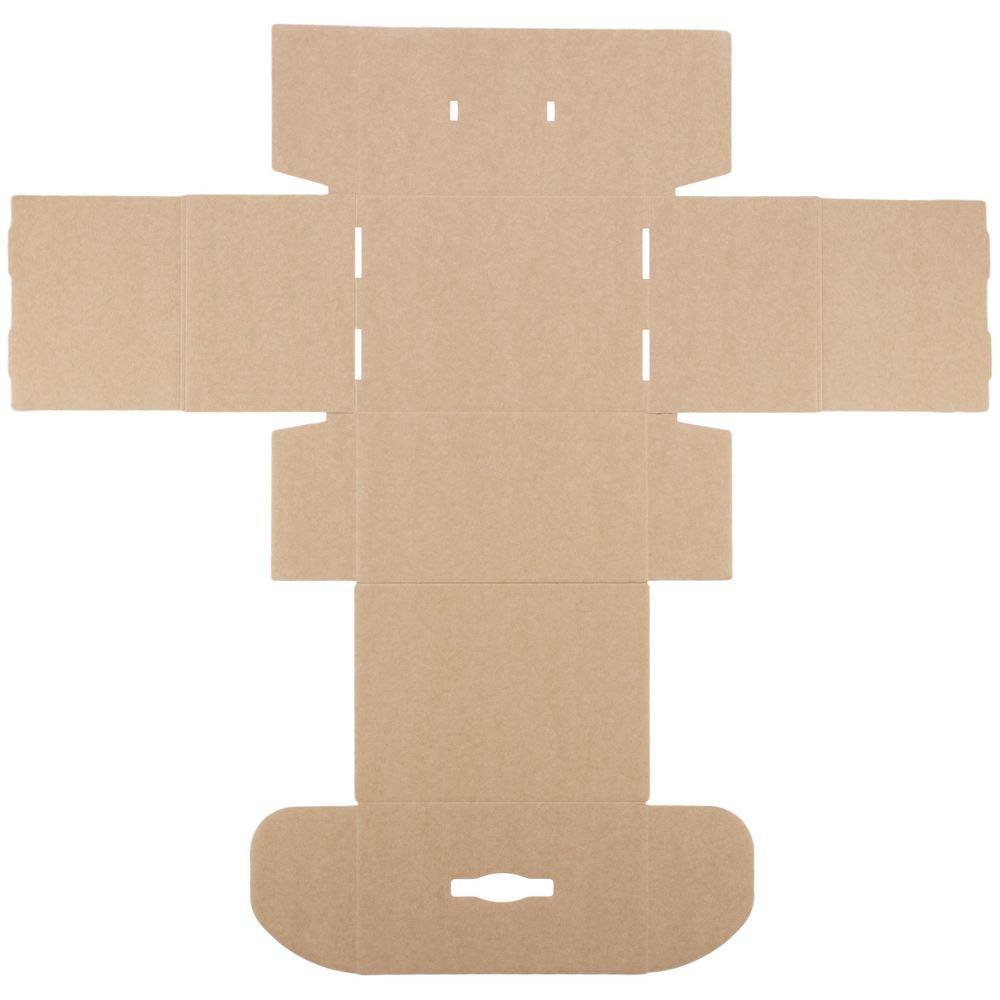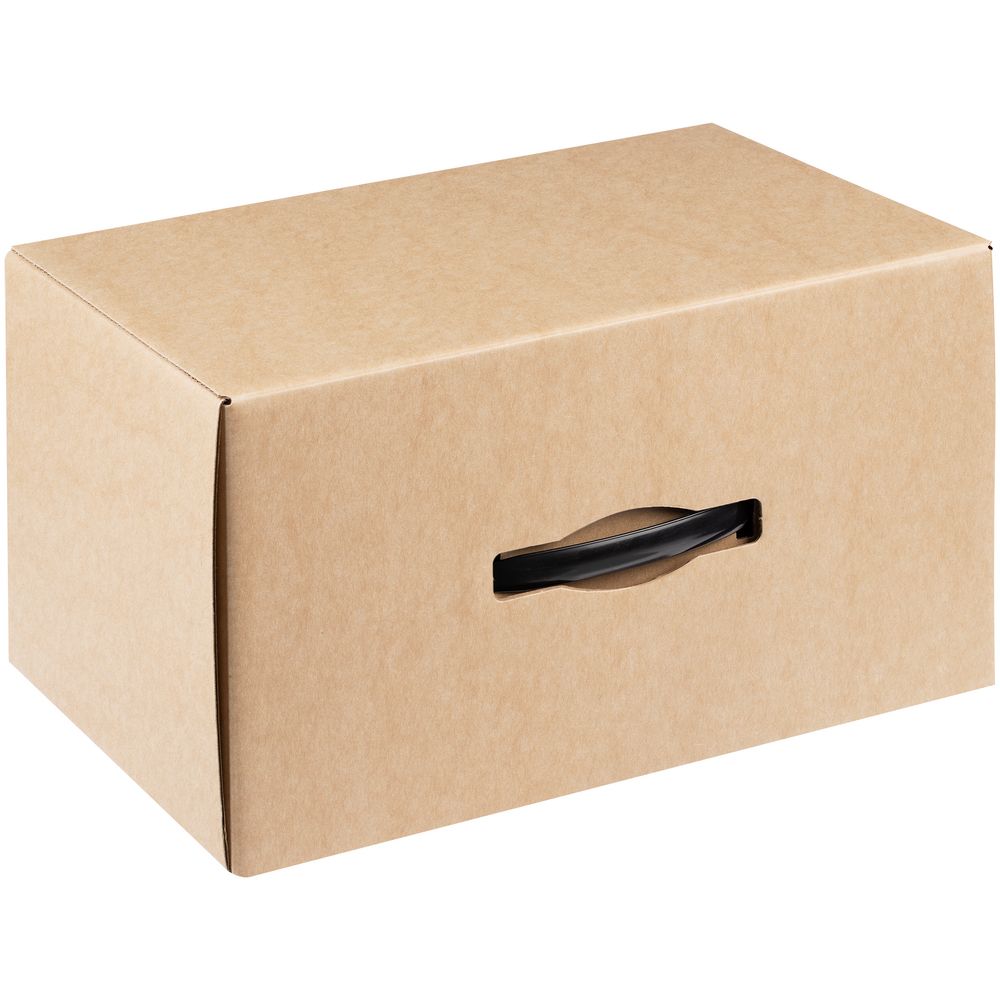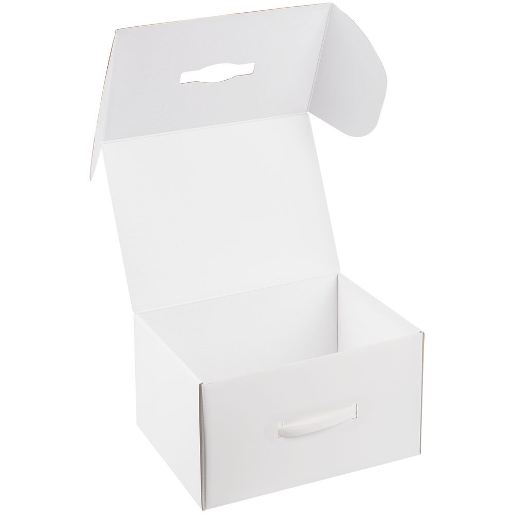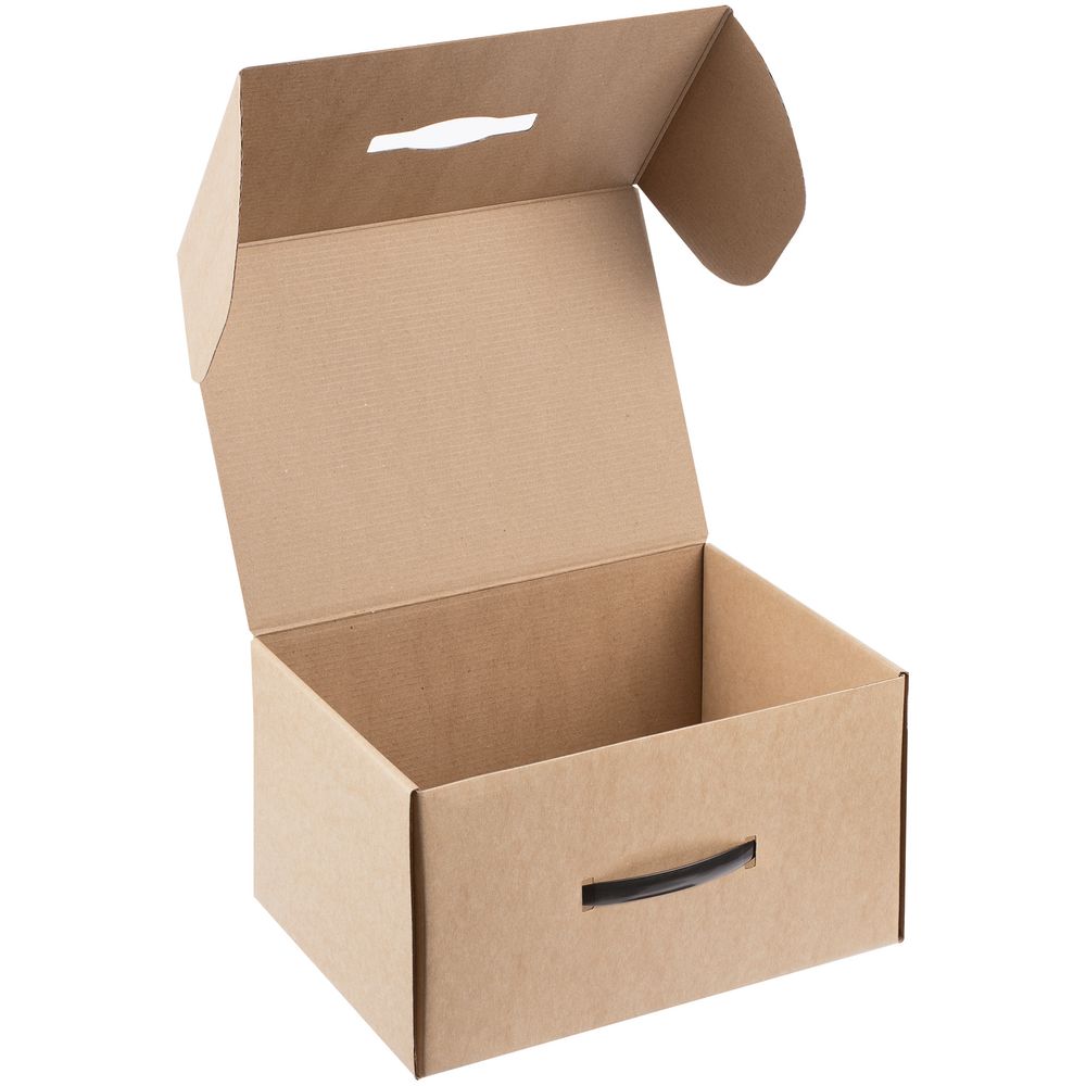 Самосборная коробка-шкатулка со вставной пластиковой ручкой.