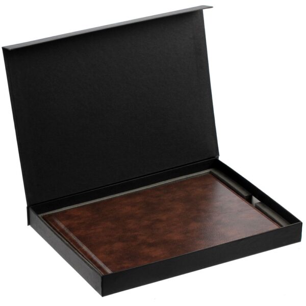 Коробка с ложементом для плакеток и ежедневников формата А4.Коробка с крышкой на магните и несъемным ложементом выполнена из переплетного картона, кашированного дизайнерской бумагой Malmero.