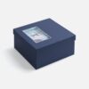Коробка из переплетного картона, кашированного синей дизайнерской бумагой.