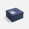 Коробка из переплетного картона, кашированного синей дизайнерской бумагой.