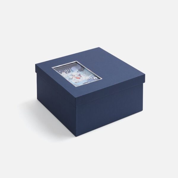 Элегантная коробка из переплетного картона The Blue Bear станет настоящим украшением зимних праздников. Ее главная изюминка — очаровательное окошко с 3D-иллюстрацией, которое словно приглашает в мир новогодних чудес.