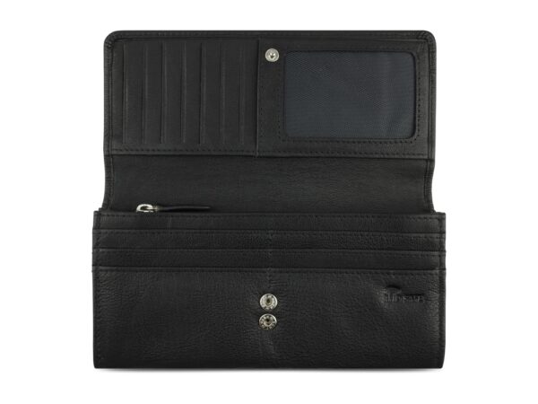 Функциональная организация: 2 отделения для банкнот, 19 слотов для карт, 3 кармана, отделение для монет, отделение на молнии, сетчатый карман, защита данных RFID.