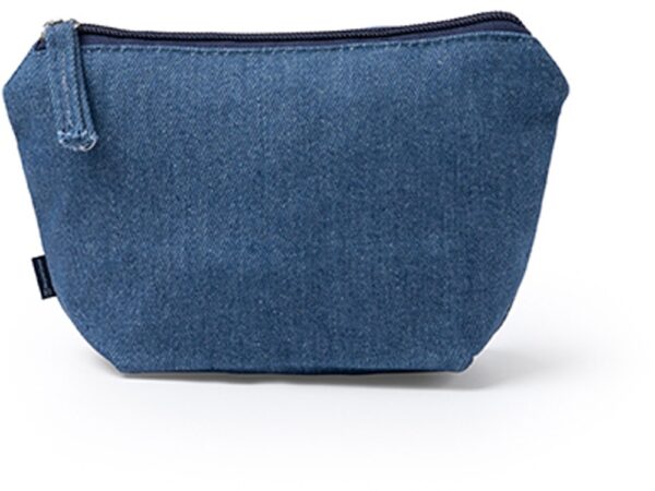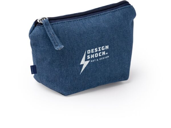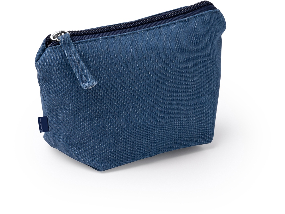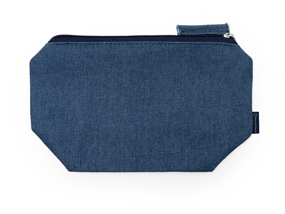 Косметичка из переработанной джинсовой ткани с молнией в тон косметички.