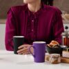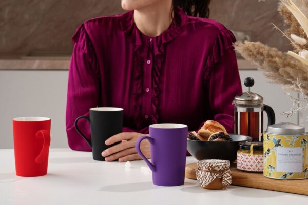 Благодаря бархатной поверхности soft-touch кружку не хочется выпускать из рук ни на секунду. Она точно не будет пылиться на полке в шкафу. Необычная форма и яркий цвет помогут освежить дизайн любой кухни.