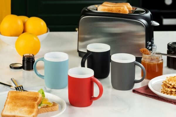 Матовая кружка Borde с белым глянцевым ободком по краю привлекает внимание ярким дизайном и лаконичной формой. Оптимальный объем и эргономичная ручка делают эту кружку удобной для ежедневного использования.
