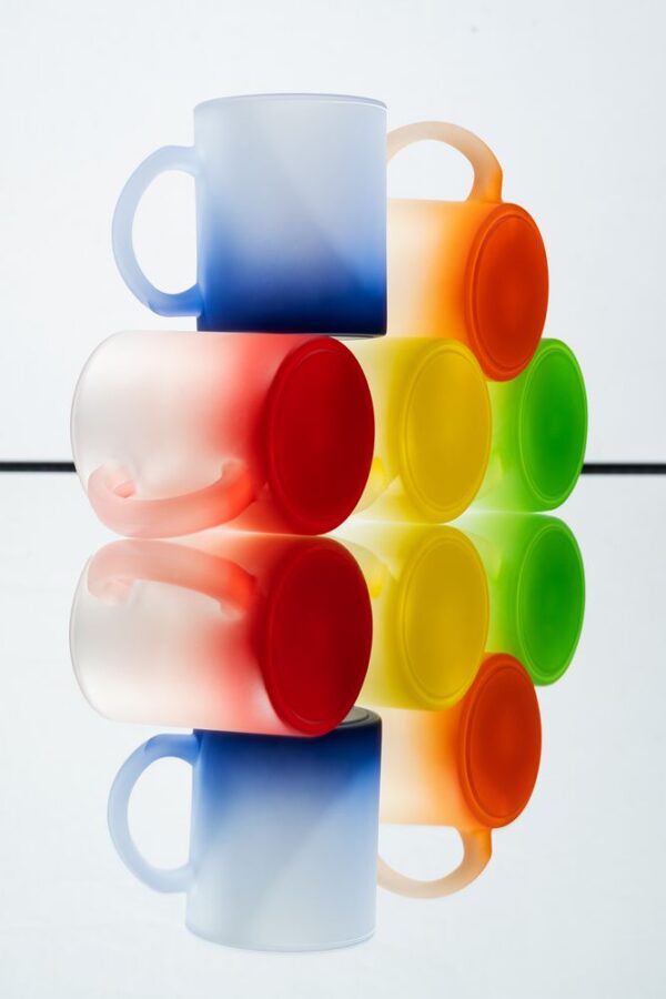 Яркая стеклянная кружка Grade Fade с эффектом омбре и плавным переходом цвета привлекает внимание оригинальным дизайном, а матовая поверхность приятна на ощупь. Подходит для сублимационной печати.