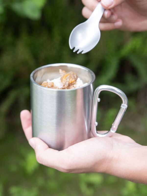 Она идеально подходит для использования в походах, кемпинге и отдыхе на природе. Удобная ручка-карабин позволяет легко прикрепить кружку к рюкзаку или поясу, чтобы она всегда была под рукой.