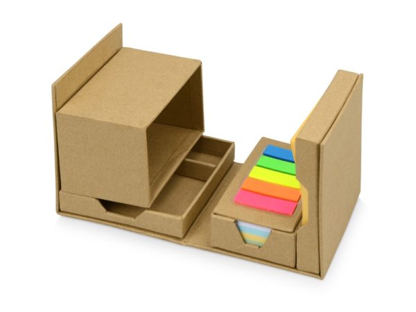 Оригинальная подставка для канцелярии «Брик» в сложенном виде представляет собой куб. А в разложенном – она превращается в удобный настольный прибор с отделениями для стикеров, бумаги для записей, скрепок и ручек. Настольный куб «Брик» сделан из бумаги и картона, и является отличным экосувениром.
