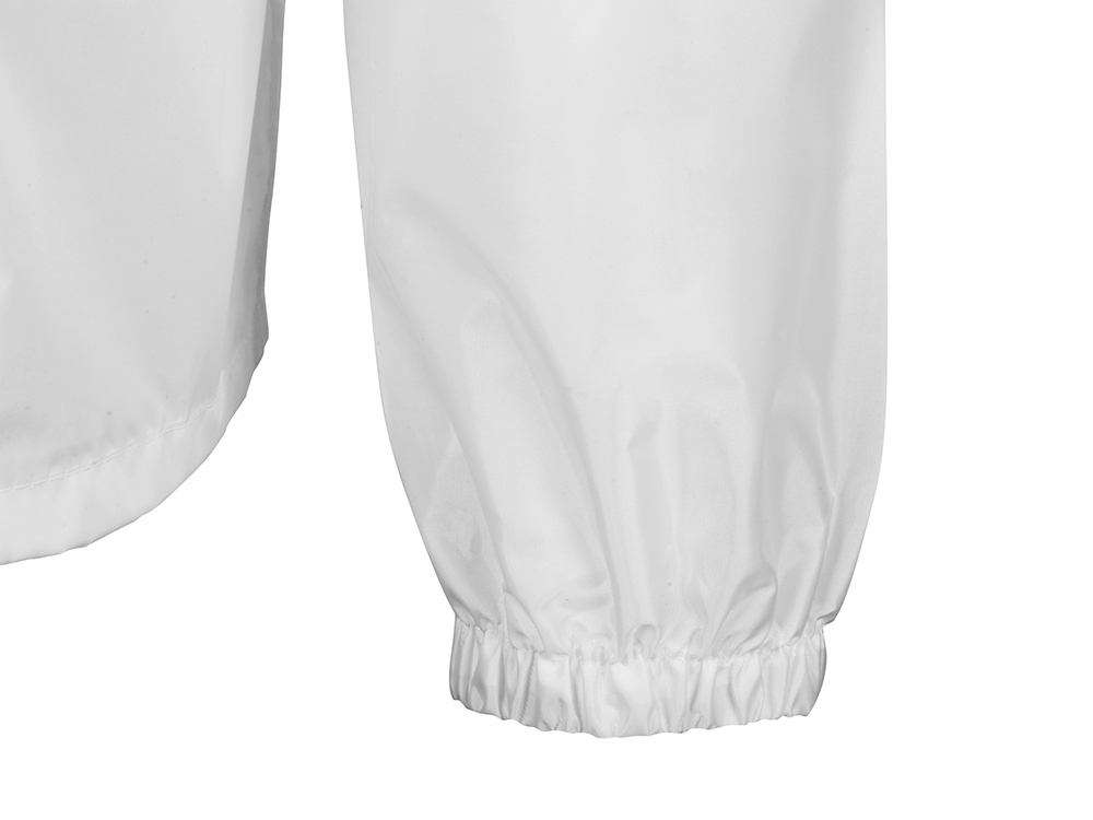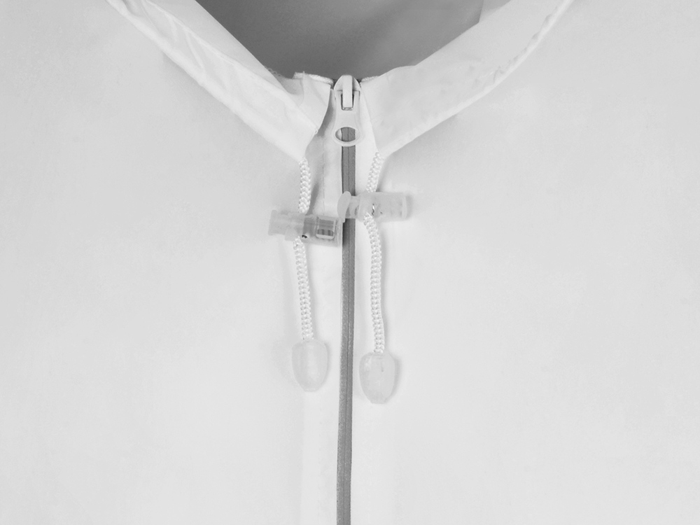 Капюшон и низ дождевика затягиваются на шнурки с фиксаторами, что позволяет отрегулировать посадку по фигуре. Манжеты дождевика — на резинке.