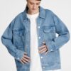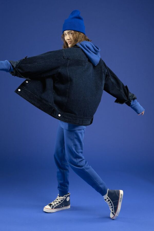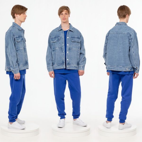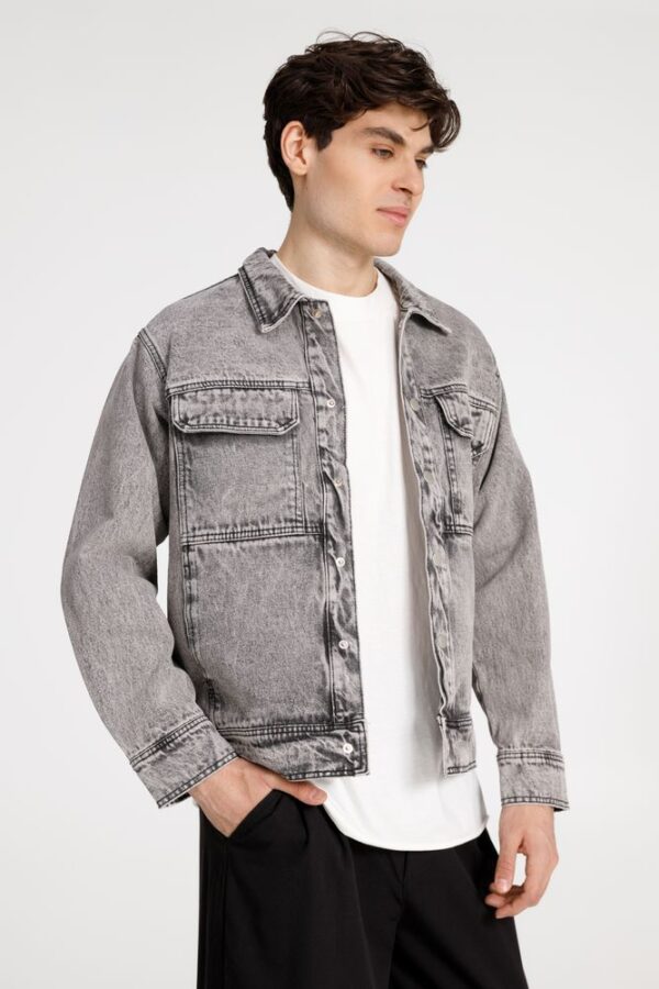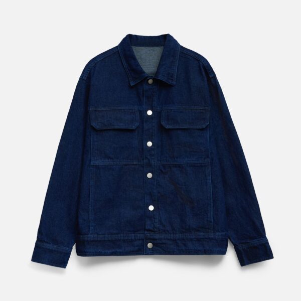 Джинсовая куртка унисекс на кнопках свободной посадки.